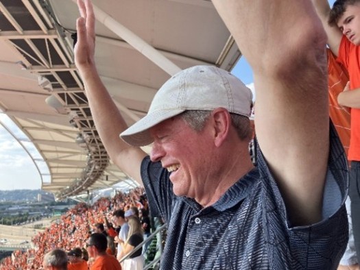 My dad and I fall into silence. We know each person’s place on the track—my grandson’s and mine and my dad’s.